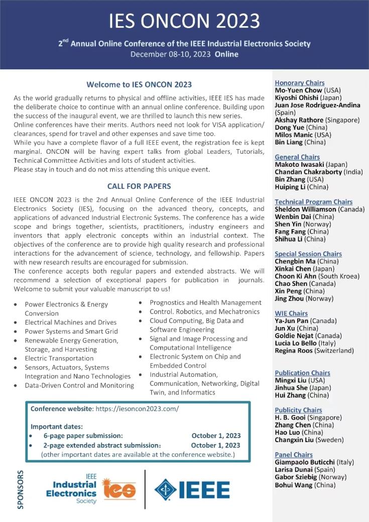 IES ONCON 20232nd Annual Online Conference of the IEEE Industrial Electronics Society
