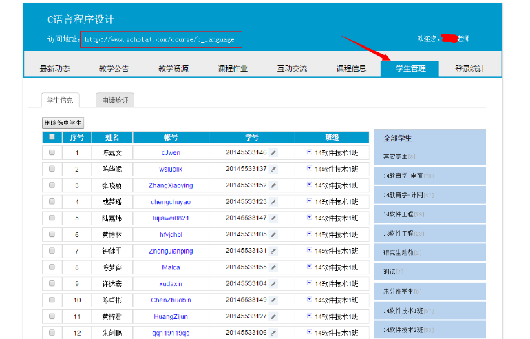曾老師利用課程平臺“學生管理”功能對學生進行分班管理,圖下圖所示: