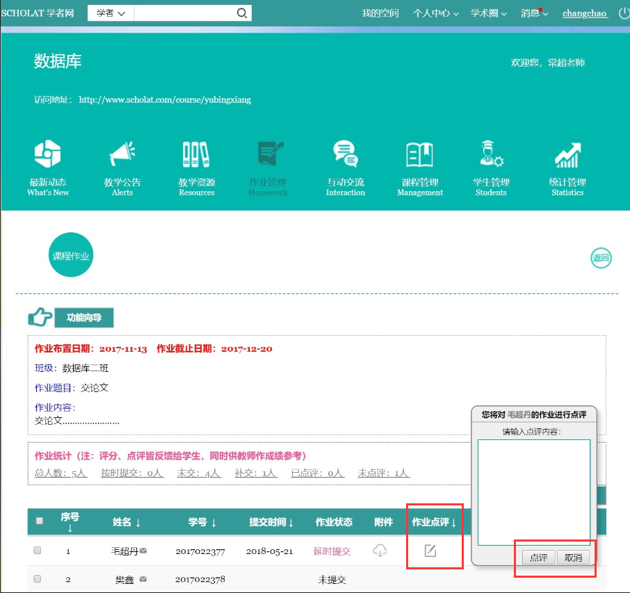 4、選擇要點評的學(xué)生作業(yè)進行作業(yè)點評