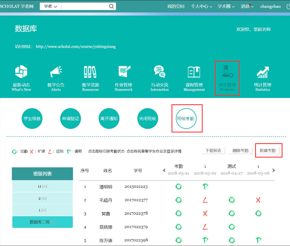 創(chuàng)建學(xué)生考勤的步驟如下,如下圖所示: