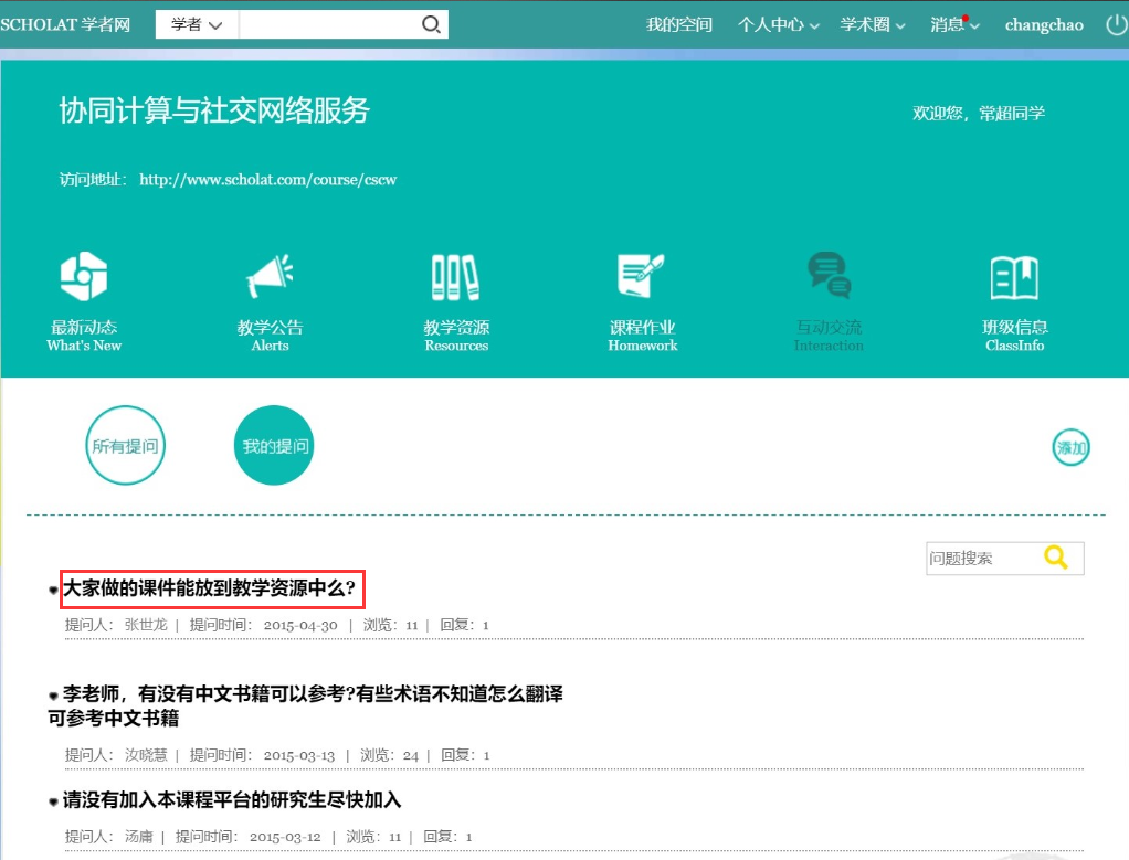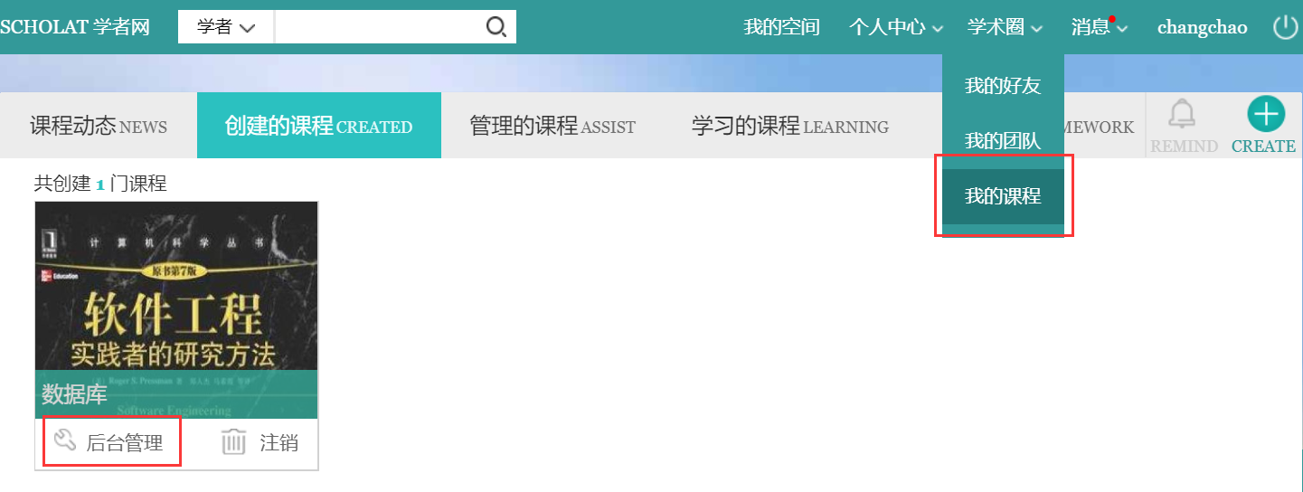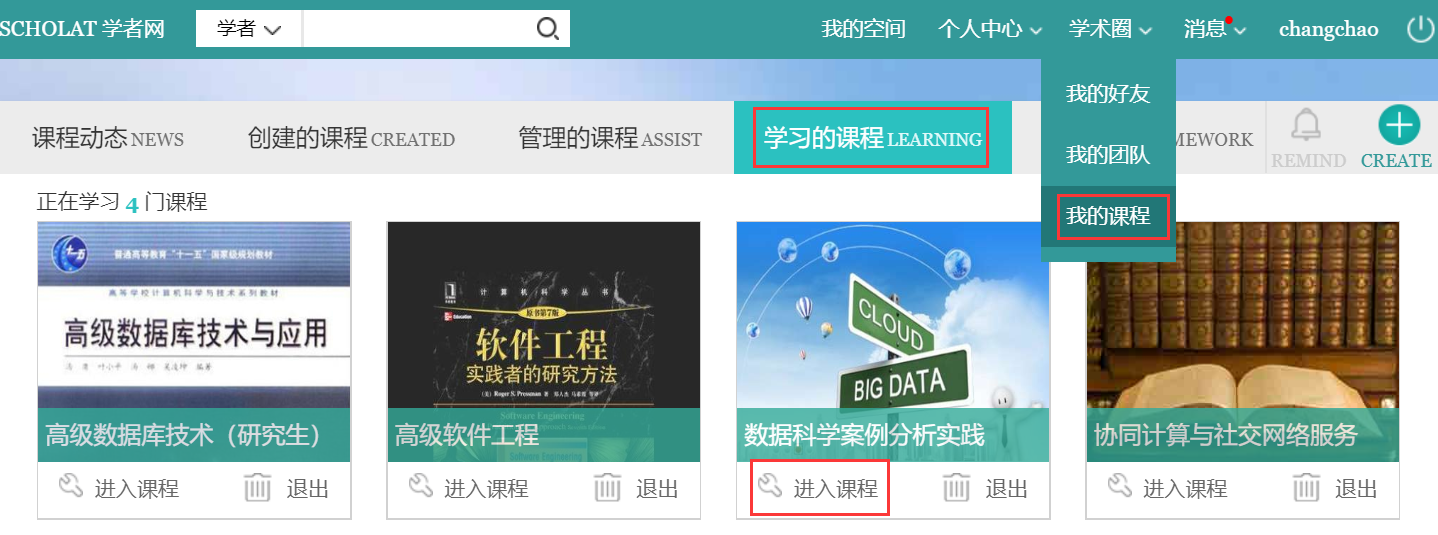 1、登錄學(xué)者網(wǎng)后,通過“學(xué)術(shù)圈”–>?“我的課程”,進入課程空間