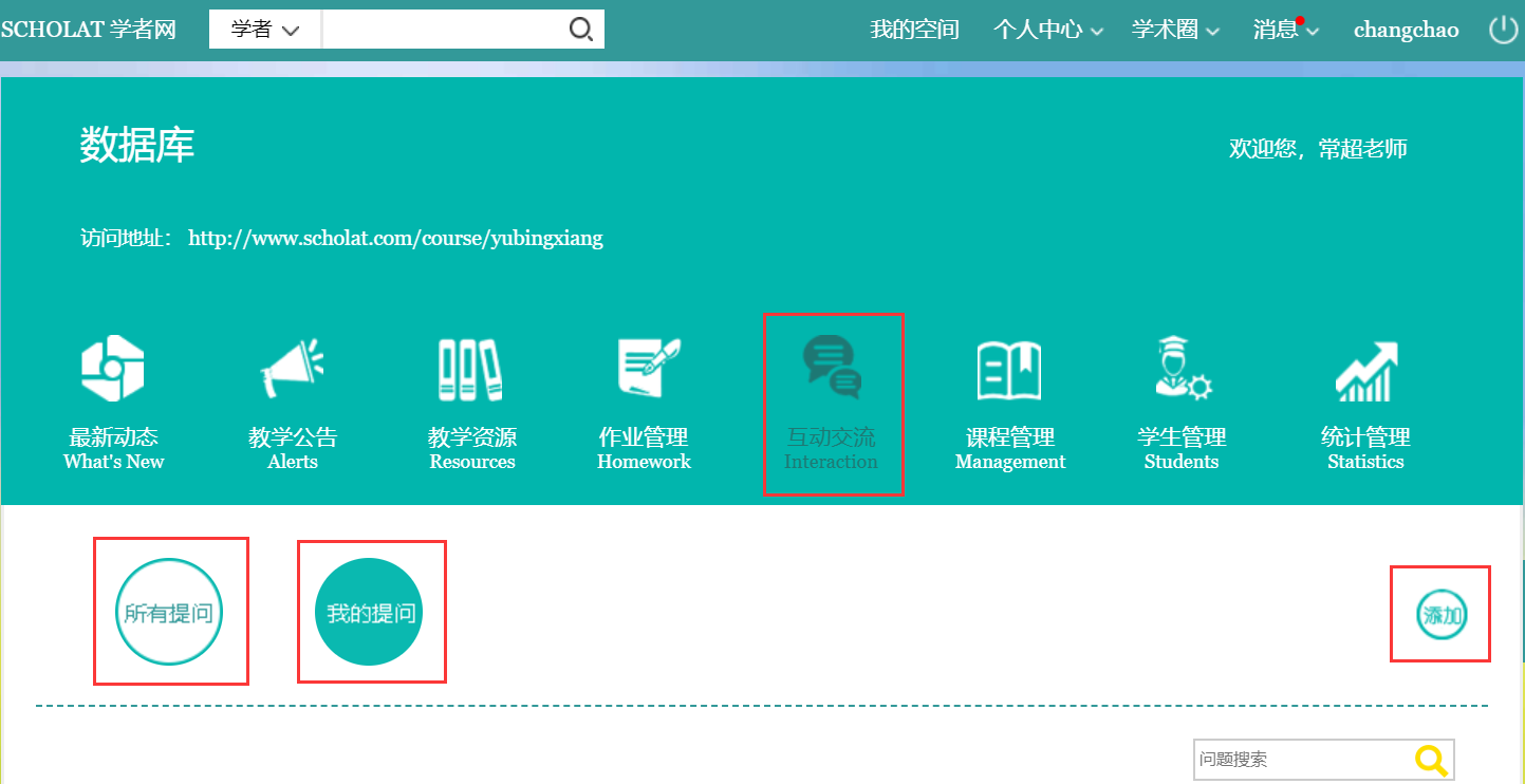 2、教師通過“后臺管理”—>“互動交流”,進入互動交流界面
