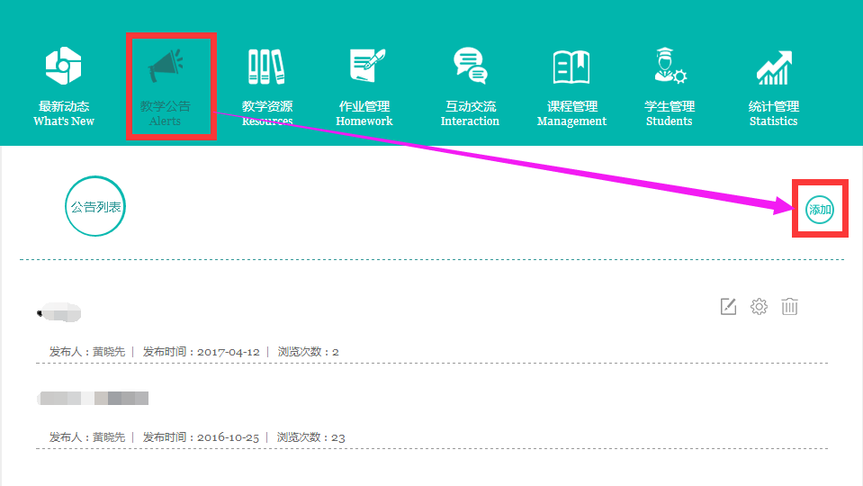 教師發(fā)布教學(xué)公告如下圖所示,具體步驟如下: