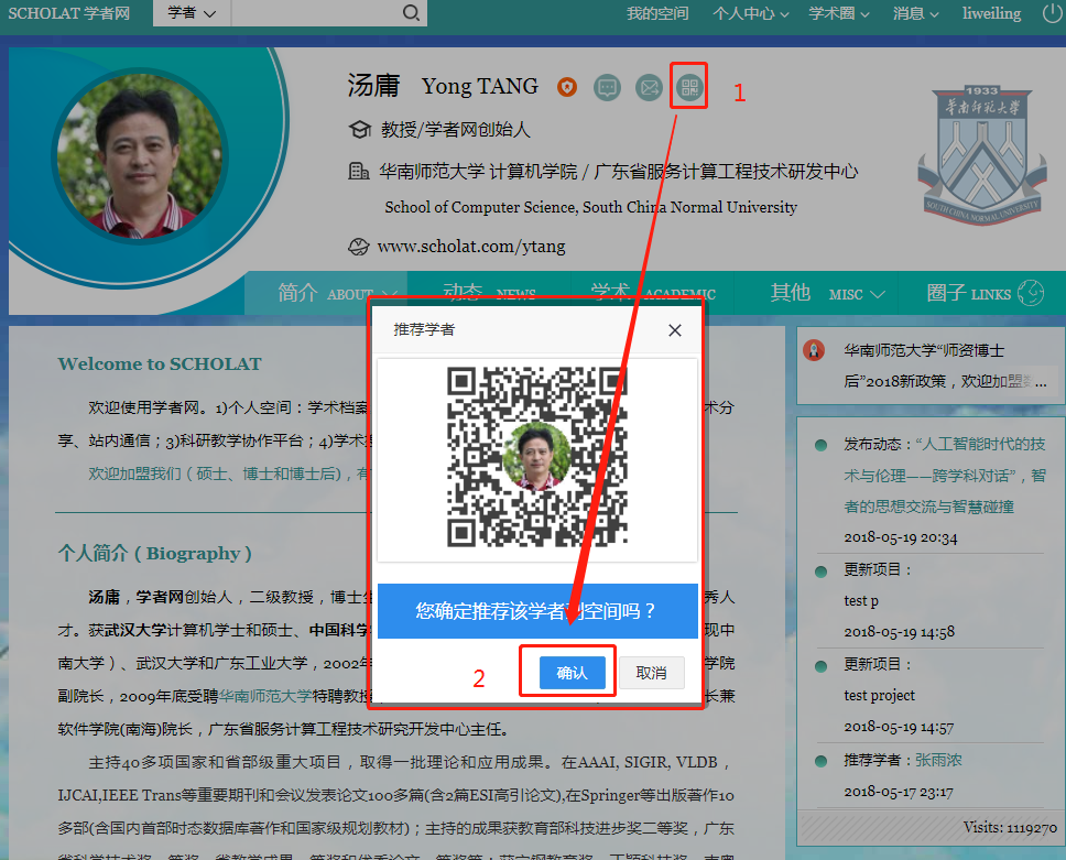 1、登錄學(xué)者網(wǎng),進(jìn)入要推薦的好友或?qū)W者的個人主頁;