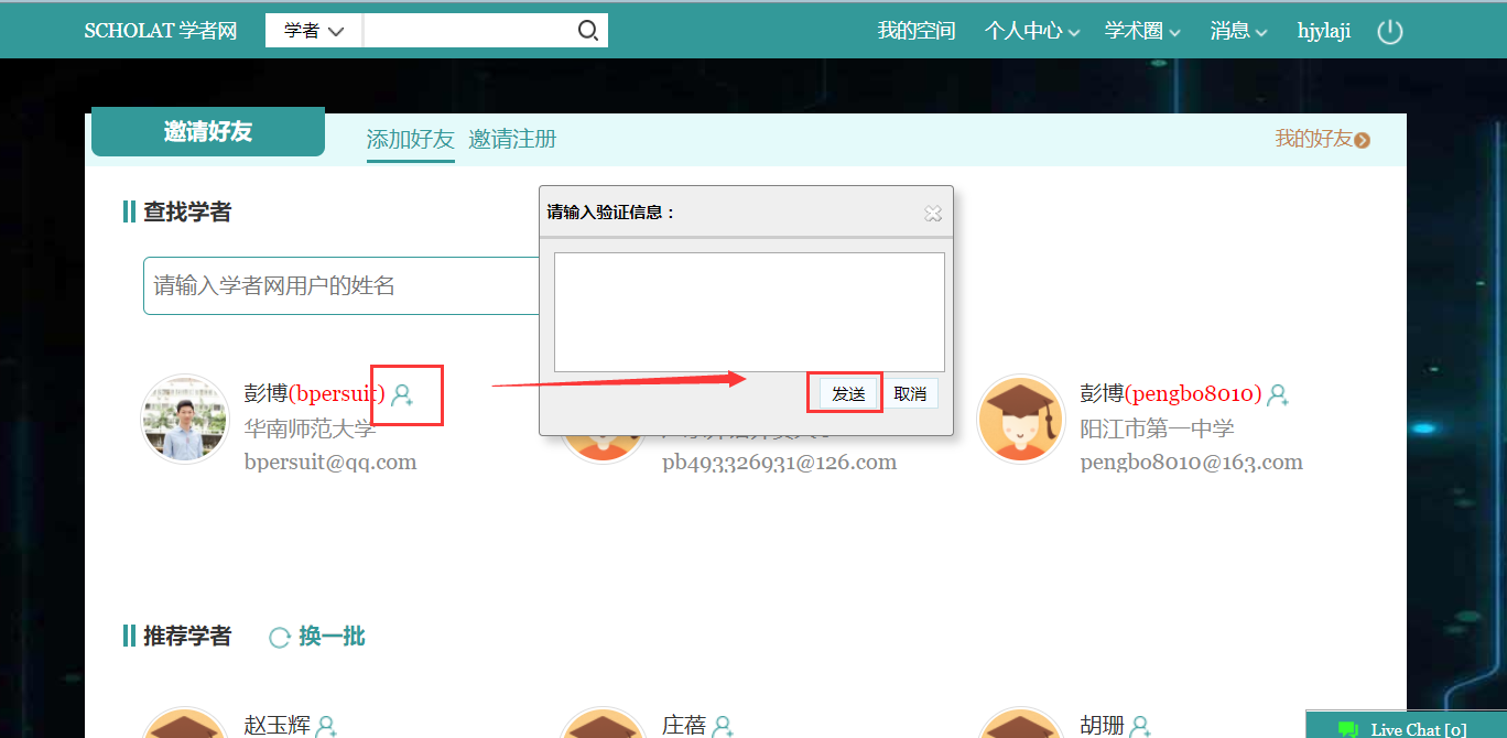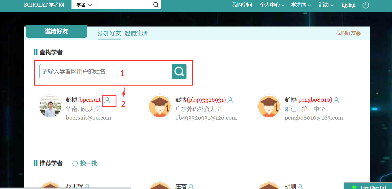 推薦好友/學(xué)者步驟如下,如下圖所示: