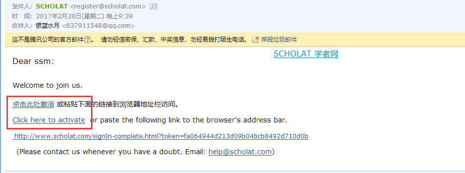 3.登錄所填注冊(cè)郵箱,點(diǎn)擊鏈接,進(jìn)入激活頁(yè)面;