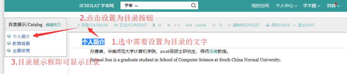 如果您剛注冊(cè)學(xué)者網(wǎng),還沒有編輯個(gè)人簡(jiǎn)介,或者您需要修改個(gè)人簡(jiǎn)介,詳細(xì)操作步驟如下: