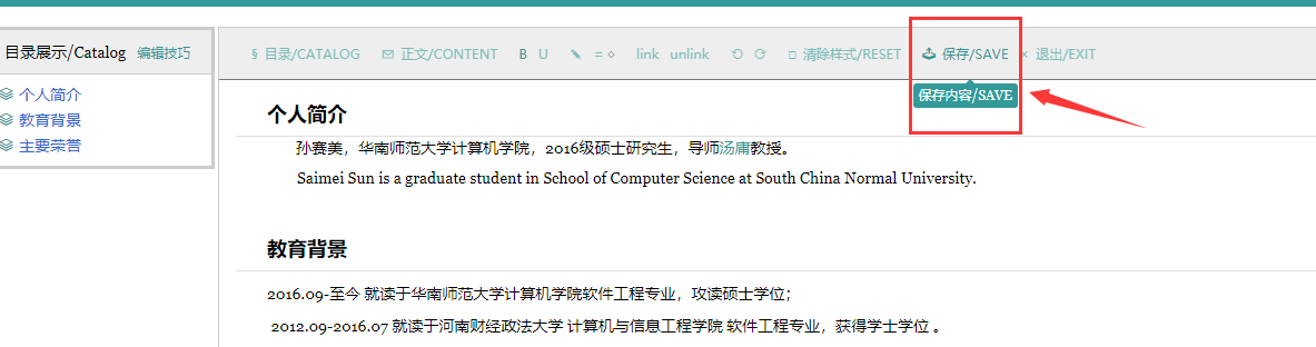 3.按照自己的內(nèi)容編寫完成,點(diǎn)擊保存按鈕,保存信息。完成編輯。