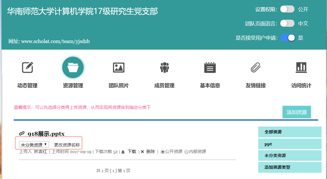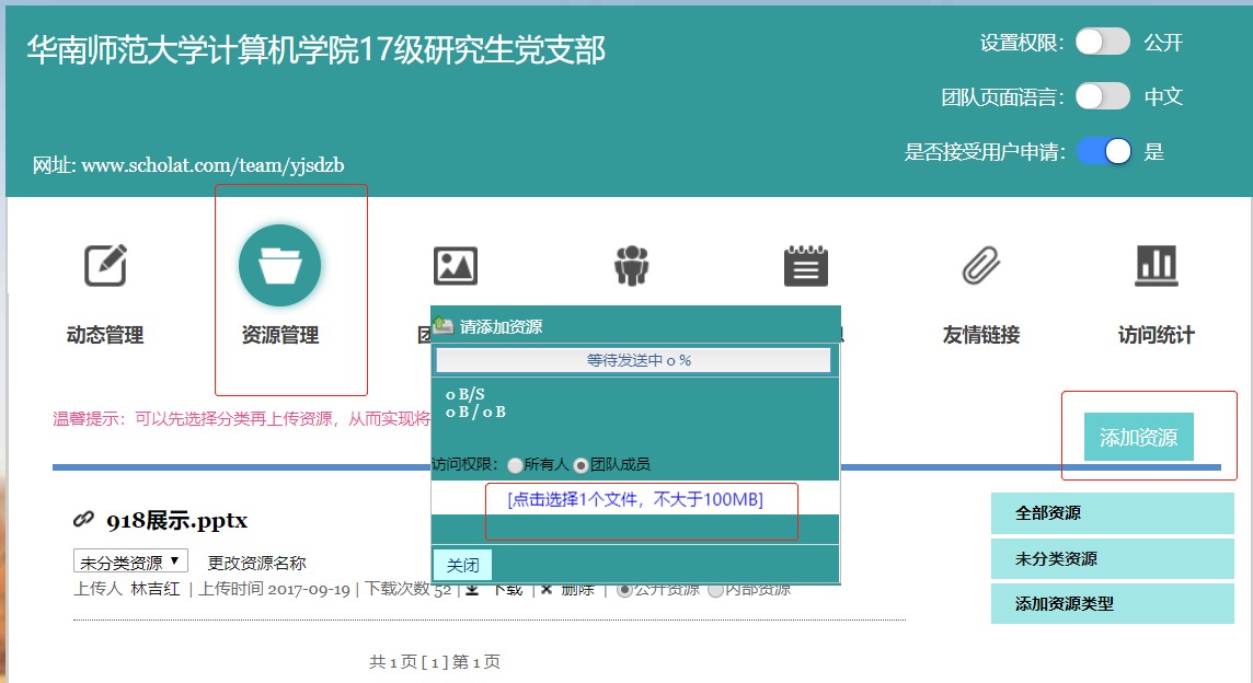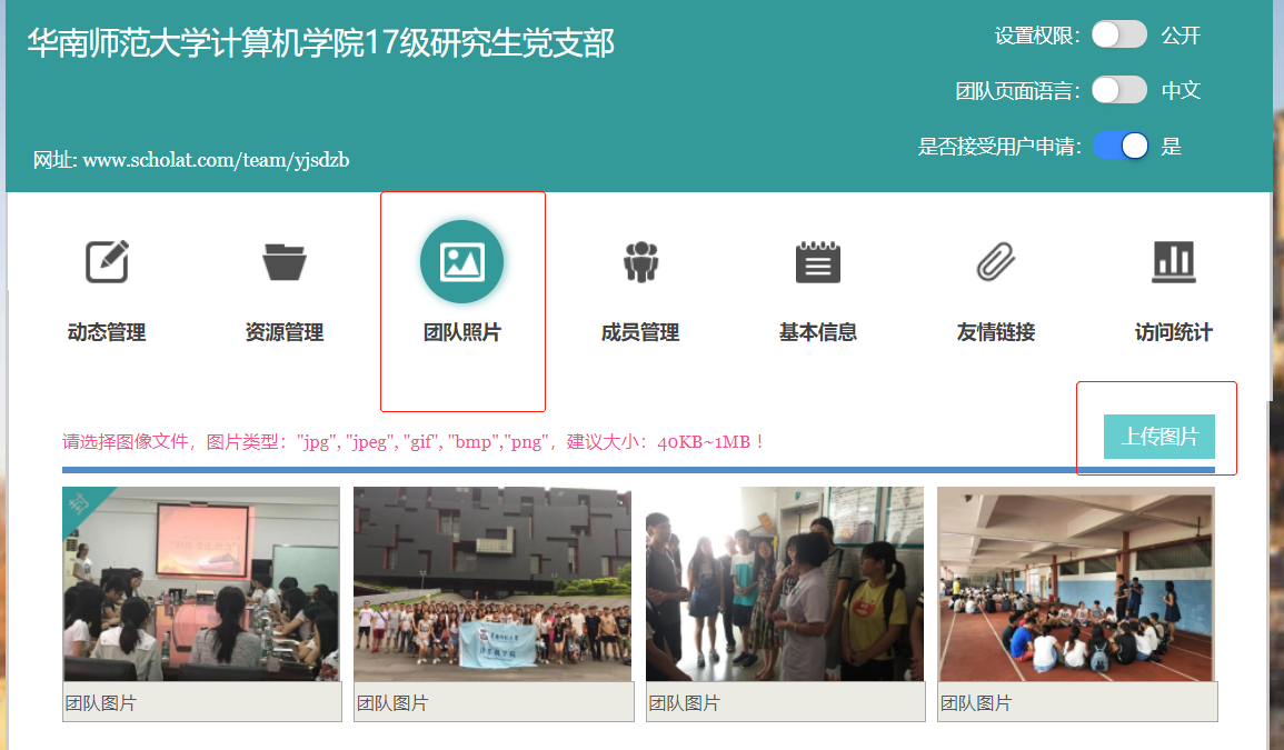1.進(jìn)入團(tuán)隊(duì)后臺(tái)管理→團(tuán)隊(duì)圖片→上傳照片