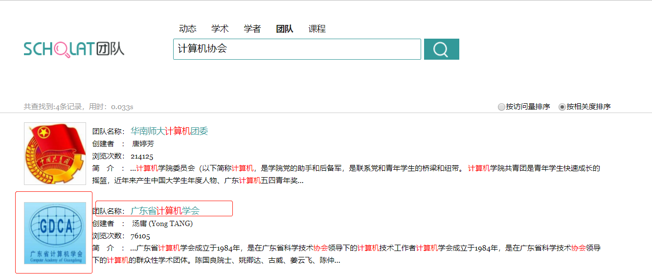 1.查看主菜單欄→下拉框中選擇團(tuán)隊(duì),輸入團(tuán)隊(duì)名→單擊搜索按鈕