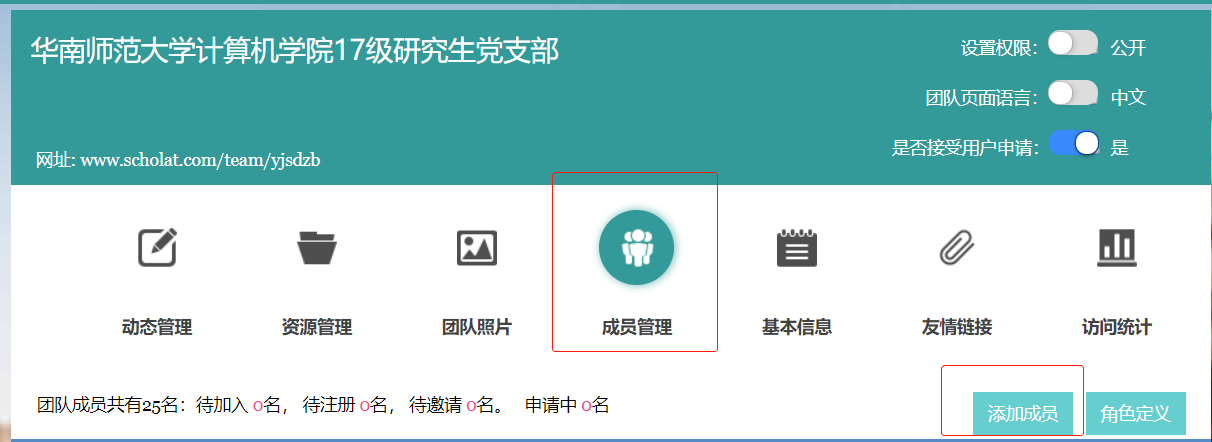 1.進(jìn)入團(tuán)隊(duì)的后臺(tái)管理