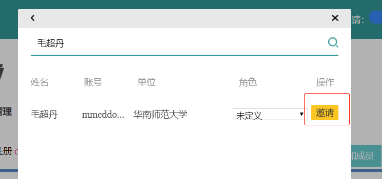 若是已經(jīng)注冊(cè)過學(xué)者網(wǎng)的用戶,可在紅框中輸入名字來搜索;若是未注冊(cè)學(xué)者網(wǎng)的用戶,邀請(qǐng)其注冊(cè)學(xué)者網(wǎng)。