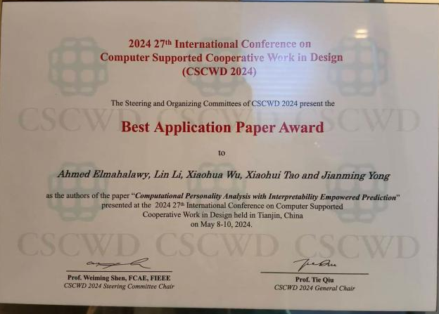 人格計(jì)算的可解釋性分析獲得協(xié)同計(jì)算領(lǐng)域CSCWD 2024會議的最佳應(yīng)用論文獎