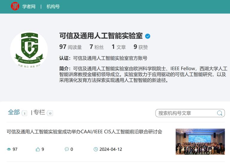 歐洲科學(xué)院院士、西湖大學(xué)講席教授金耀初“可信及通用人工智能實(shí)驗(yàn)室”入駐學(xué)者網(wǎng)機(jī)構(gòu)號(hào)