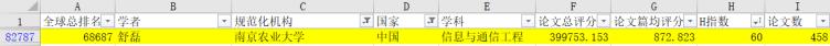 近日,國內(nèi)全球?qū)W者庫網(wǎng)站公布了“2023全球?qū)W者學(xué)術(shù)影響力排名(終身學(xué)術(shù)影響力榜)”,該榜單按照積分高低排列出全球10萬名學(xué)者,國內(nèi)共有8029人入圍,南京農(nóng)業(yè)大學(xué)共有36人入選,舒磊教授是國內(nèi)農(nóng)業(yè)類大學(xué)中計(jì)算機(jī)科學(xué)與技術(shù)和信息與通信工程學(xué)科唯一上榜者。