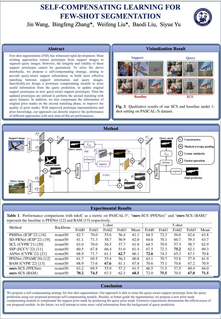 論文信息:J. Wang, B. Zhang, W. Liu, B. Liu and S. Yu, "Self-Compensating Learning for Few-Shot Segmentation," 2023 IEEE International Conference on Image Processing (ICIP), Kuala Lumpur, Malaysia, 2023, p