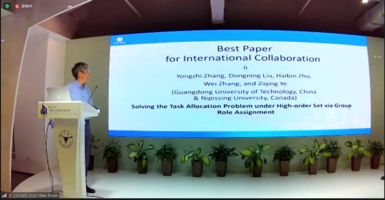 組內(nèi)2019級(jí)碩士研究生張永志同學(xué)在剛舉行結(jié)束的2022 IEEE 25th International Conference on Computer Supported Cooperative Work in Design (IEEE CSCWD 2022)會(huì)議上,喜獲最佳論文(國際合作)獎(jiǎng)項(xiàng),為角色協(xié)同(Role-Based Collaboration)、E-CARGO和群組角色指派(Grou
