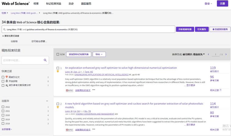 據(jù)Essential Science Indicators(ESI)數(shù)據(jù)庫統(tǒng)計(jì),課題組龍文教授2018年2月發(fā)表在《Engineering Applications of Artificial Intelligence》上的論文“An exploration-enhanced grey wolf optimizer to solve high-dimensional numerical