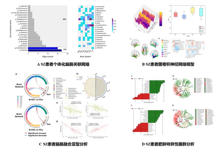 MINILAB 實(shí)驗(yàn)室吳凱教授與廣州醫(yī)科大學(xué)附屬腦科醫(yī)院吳逢春主任緊密合作,圍繞重性精神疾病的腦腸生物標(biāo)志物,綜合運(yùn)用多模態(tài)磁共振圖像、腦電、腸道微生物等多生物學(xué)數(shù)據(jù),開(kāi)展了腦網(wǎng)絡(luò)組學(xué)、腦腸關(guān)聯(lián)網(wǎng)絡(luò)、AI輔助診斷算法等系列研究。近期,在Research、NeuroImage、Journal of Translational Medicine等國(guó)際權(quán)威學(xué)術(shù)期刊上發(fā)表了相關(guān)研究成果。 重性精神疾病,