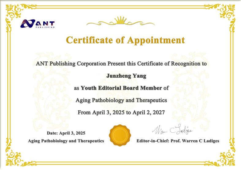 有幸入選Aging Pathobiology and Therapeutics青年編委