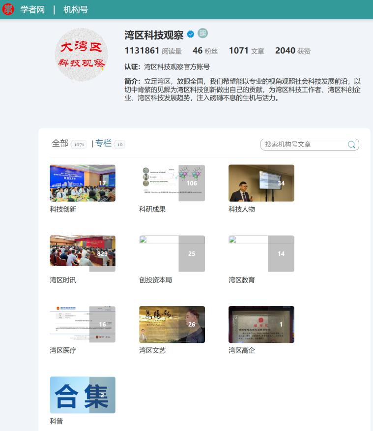 學(xué)者網(wǎng)機(jī)構(gòu)號(hào)案例:灣區(qū)科技觀察(發(fā)文超千篇,閱讀量超百萬(wàn)次)| 歡迎各類科技機(jī)構(gòu)體驗(yàn)