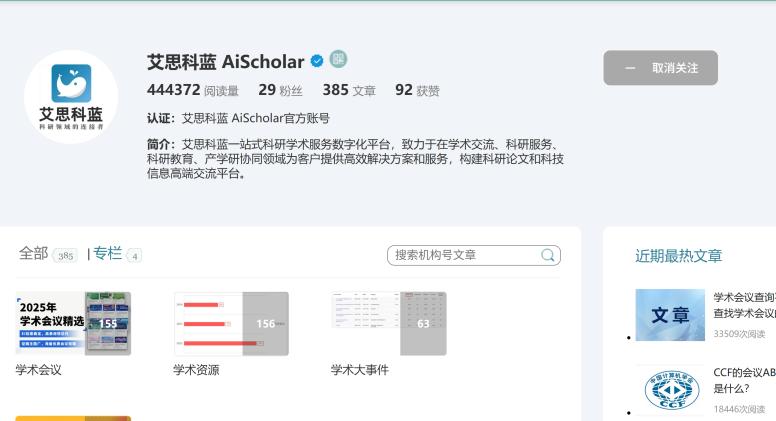 學(xué)者網(wǎng)機(jī)構(gòu)號(hào)是類似微信公眾號(hào)的媒體發(fā)布平臺(tái)。主要優(yōu)點(diǎn):在學(xué)者網(wǎng)學(xué)術(shù)圈傳播學(xué)術(shù)信息,推送更精準(zhǔn)更有效;此外,機(jī)構(gòu)號(hào)文章還可以通過(guò)各類媒體(例如微信朋友圈等)轉(zhuǎn)發(fā)和推廣。目前己有40多家機(jī)構(gòu)(包括教授團(tuán)隊(duì)、實(shí)驗(yàn)室、學(xué)術(shù)社團(tuán)、會(huì)議公司等)注冊(cè)使用。 艾思科藍(lán)一站式科研學(xué)術(shù)服務(wù)數(shù)字化平臺(tái),2023年6月入駐學(xué)者網(wǎng)機(jī)構(gòu)號(hào),截止2025年6月24日,已發(fā)文385篇,總閱讀量444372(44萬(wàn)