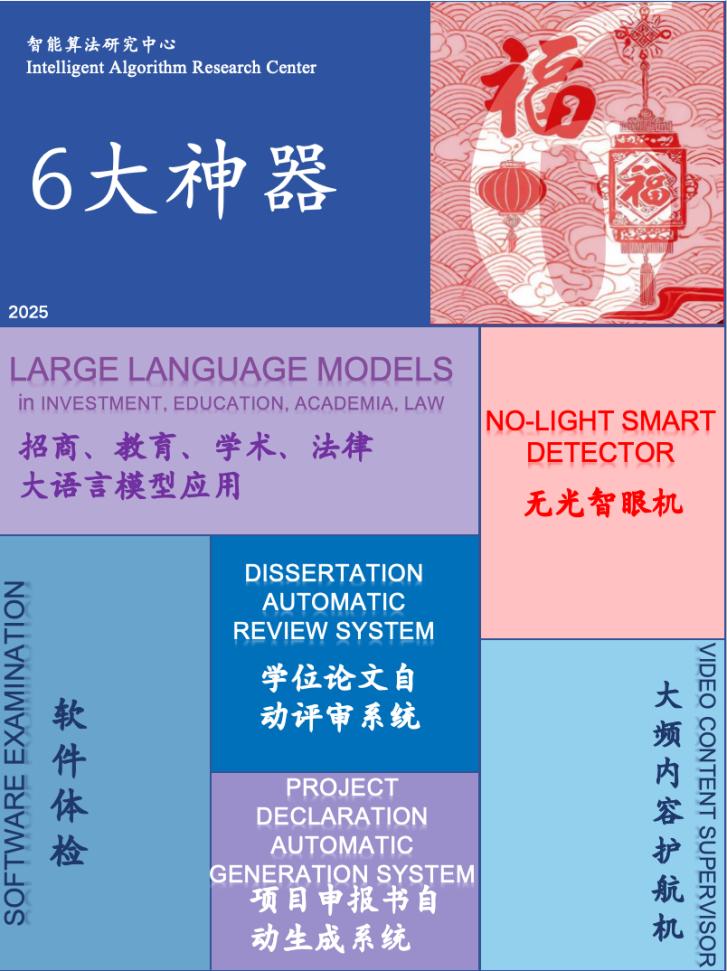 親愛的公眾號讀者: 祥蛇納福,福運將至!智能算法研究中心特此獻上六個開啟 AI 智慧寶庫的秘籍,伴您新歲展宏圖,恭祝新春嘉福,萬事順意! 在當(dāng)下這個科技飛速發(fā)展、創(chuàng)新活力蓬勃的時代,智能算法研究中心勇立潮頭。在新的一年,我們攜“六大神器”重磅登場!這一系列突破性技術(shù)成果為各行業(yè)發(fā)展注入強大新動能,開啟全新篇章。 1.招商、教育、學(xué)術(shù)、法律大語言模型