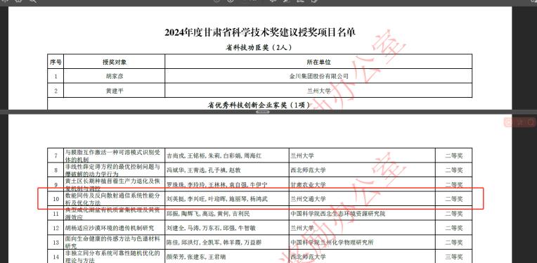 祝賀團隊獲甘肅省自然科學(xué)二等獎
