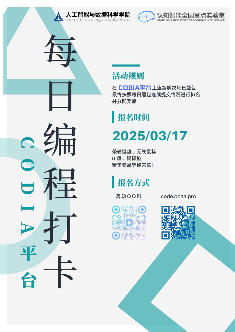 平臺簡介 CODIA(Coder Diagnosis) 是由認知智能全國重點實驗室開發(fā)的智能編程平臺 (https://code.bdaa.pro)。CODIA現(xiàn)有用戶量15500+,提交量38w+;平臺功能覆蓋學(xué)生自學(xué)、教師授課、考研復(fù)試等情景;包含路徑規(guī)劃、自適應(yīng)測評、用戶認知診斷、智能習(xí)題推薦、代碼修復(fù)等智能化服務(wù)。該平臺現(xiàn)已應(yīng)用于中科大認知智能全國重點實驗室考研機試、程序設(shè)計、數(shù)據(jù)分析等
