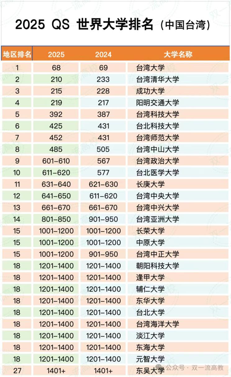 中國(guó)臺(tái)灣有27所大學(xué)上榜,臺(tái)灣大學(xué)進(jìn)入世界前100名;