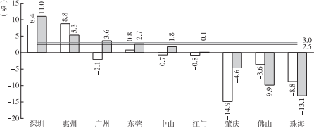 3. 產(chǎn)業(yè)結(jié)構(gòu):粵九市第三產(chǎn)業(yè)結(jié)束兩連降