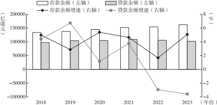 圖 22 2018~2023 年澳門存、貸款余額及增速