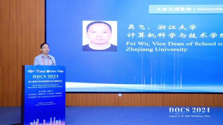 國家杰出青年科學基金獲得者、浙江大學計算機科學與技術學院副院長、黨委書記吳飛教授在開幕式上強調了人工智能在當前社會發(fā)展中的關鍵地位,表達了對本次DOCS國際會議順利召開,與會者共同迸發(fā)出創(chuàng)新思維的火花的期許。