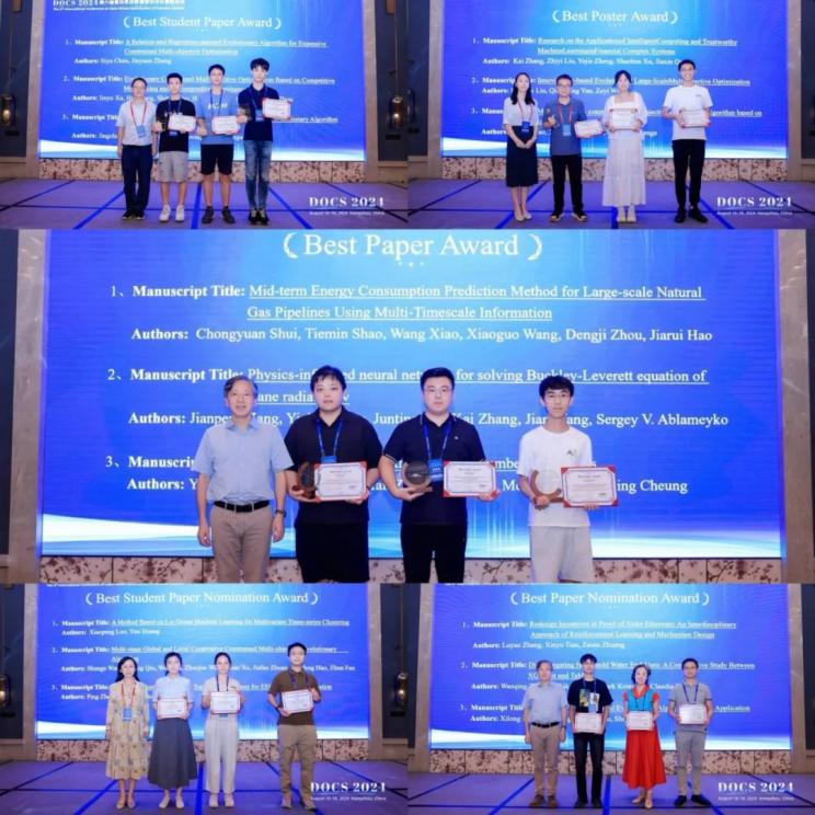 閉幕式上,歐洲科學院院士、IEEE計算智能學會主席金耀初教授和杭州師范大學信息科學與技術學院黨委書記周春兒教授分別為大會作閉幕致辭,對為本次會議作出貢獻的所有人員表達了衷心的感謝。同時,本次大會還設置了最佳海報、最佳學生論文提名、最佳學生論文、最佳論文提名以及最佳論文等獎項評選和頒發(fā)。