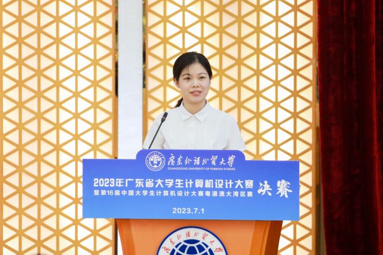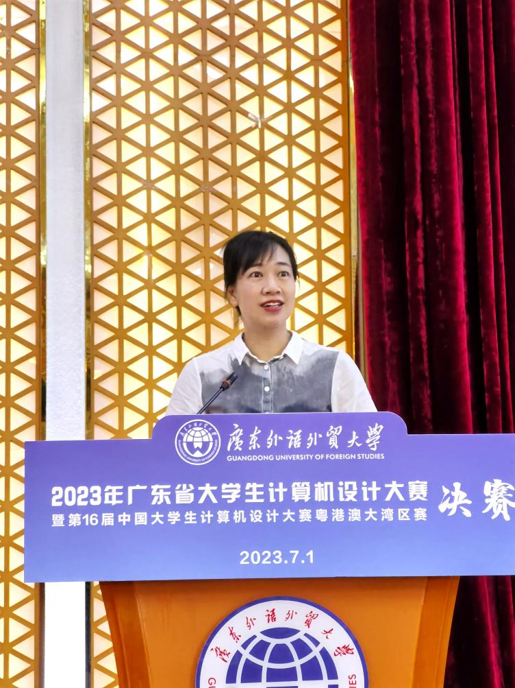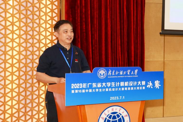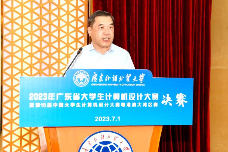 灣區(qū)時(shí)訊 2023年7月1日,由廣東省教育廳主辦的2023年廣東省大學(xué)生計(jì)算機(jī)設(shè)計(jì)大賽暨第16屆中國大學(xué)生計(jì)算機(jī)設(shè)計(jì)大賽粵港澳大灣區(qū)賽決賽在廣東外語外貿(mào)大學(xué)大學(xué)城校區(qū)舉辦。廣東省教育廳高等教育處副處長吳華明,廣東外語外貿(mào)大學(xué)校黨委常委、副校長焦方太,教務(wù)部副部長唐靜,現(xiàn)代教育技術(shù)中心副主任廖信海,75位專家評(píng)委、部分帶隊(duì)教師出席了決賽開幕式。開幕式由信息科學(xué)與技術(shù)學(xué)院/網(wǎng)絡(luò)空間安全學(xué)院院長王常吉教授主持。