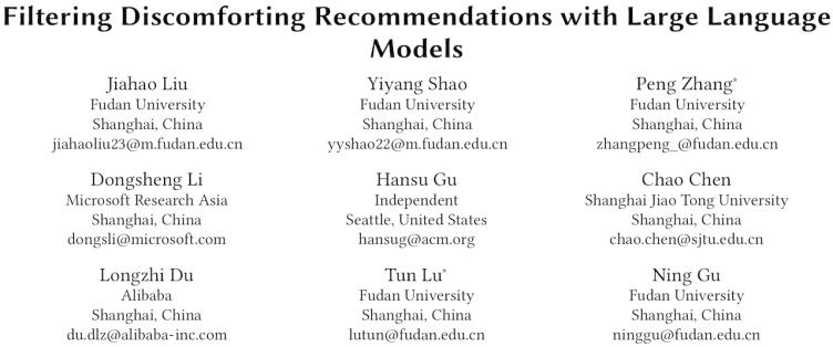 日前,實(shí)驗(yàn)室博士生劉家豪作為第一作者的論文Filtering Discomforting Recommendations with Large Language Models被The ACM Web Conference 2025 會議錄用。
