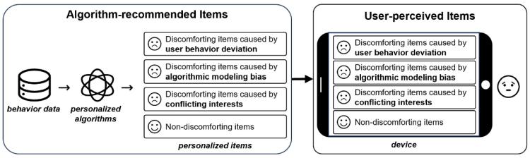 個(gè)性化算法通過分析用戶偏好來提供定制化內(nèi)容,從而支持用戶決策,在各類網(wǎng)絡(luò)平臺上已成為不可或缺的工具。盡管這些算法旨在提升用戶體驗(yàn),但它們可能無意間向用戶推薦令人不適的內(nèi)容。例如,如果用戶搜索與健康相關(guān)的敏感話題,算法可能會推薦相關(guān)的健康產(chǎn)品,這可能被用戶視為對隱私的侵犯,從而引發(fā)不適。同樣,當(dāng)用戶處于情緒低落的狀態(tài)(如剛經(jīng)歷分手),缺乏情境感知能力的算法可能會推薦喚起痛苦回憶的內(nèi)容,從而加劇用戶的情緒困擾。這些推薦不僅可能無法吸引用戶,甚至可能帶來焦慮、不安或痛苦等負(fù)面情緒后果。不適感的感知極具主觀性,也就是說,一個(gè)用戶認(rèn)為有趣的內(nèi)容,可能會讓另一個(gè)用戶感到不適。這種主觀性凸顯了對不適內(nèi)容識別方法的迫切需求,即方法需要更加細(xì)致入微,并能更好地貼合個(gè)體用戶的體驗(yàn)。