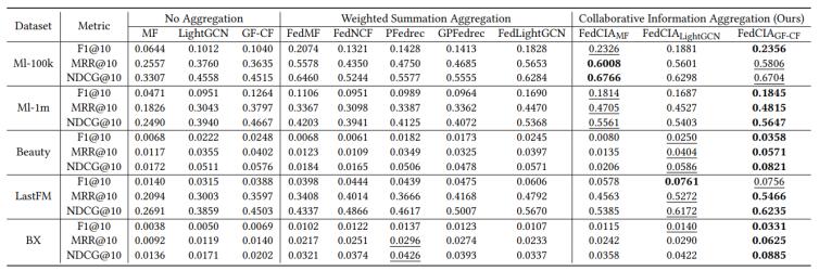 FedCIA:利用協(xié)同信息聚合的聯(lián)邦推薦系統(tǒng)
