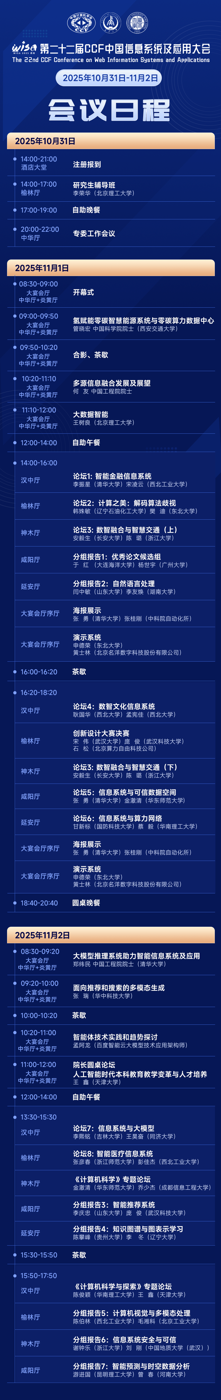 由中國計算機學會(CCF)主辦,CCF信息系統(tǒng)專業(yè)委員會、長安大學、西北大學承辦,北京百度網(wǎng)訊科技有限公司、陜西師范大學、西安建筑科技大學、西安理工大學、西安科技大學、陜西計算機學會協(xié)辦的旗艦會議——第二十二屆CCF中國信息系統(tǒng)及應(yīng)用大會(WISA 2025)將于2025年10月31日至11月2日在西安召開。