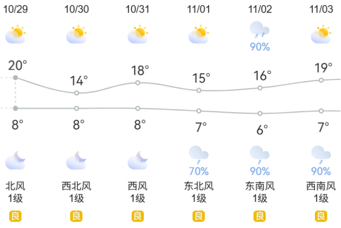 天氣預(yù)報顯示,會議期間西安天氣為多云、小雨天氣,請準備厚衣服、雨具。