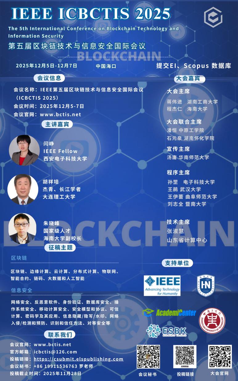 一、2025年IEEE第五屆區(qū)塊鏈技術(shù)與信息安全國際會議