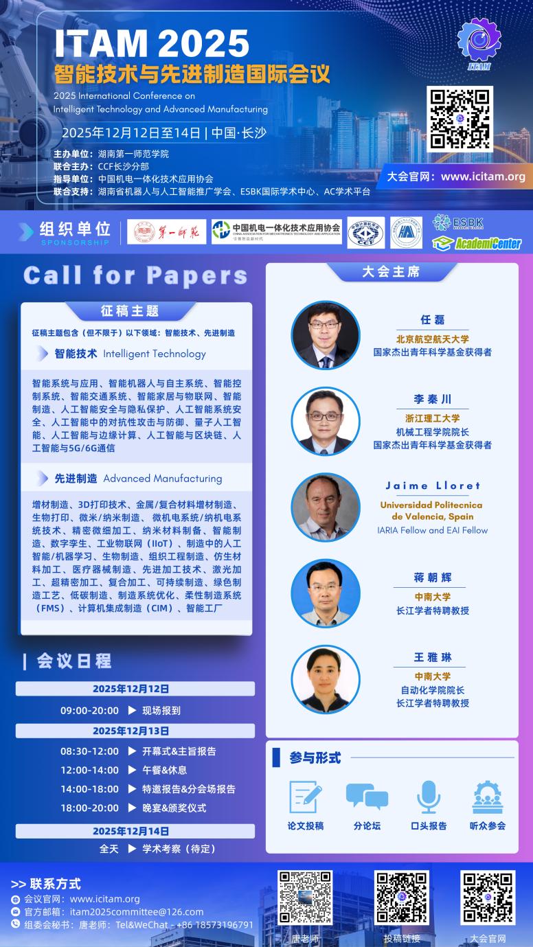 | 2025/12/12-14 | 中國 長沙 | 智能技術(shù)與先進(jìn)制造國際會議 |