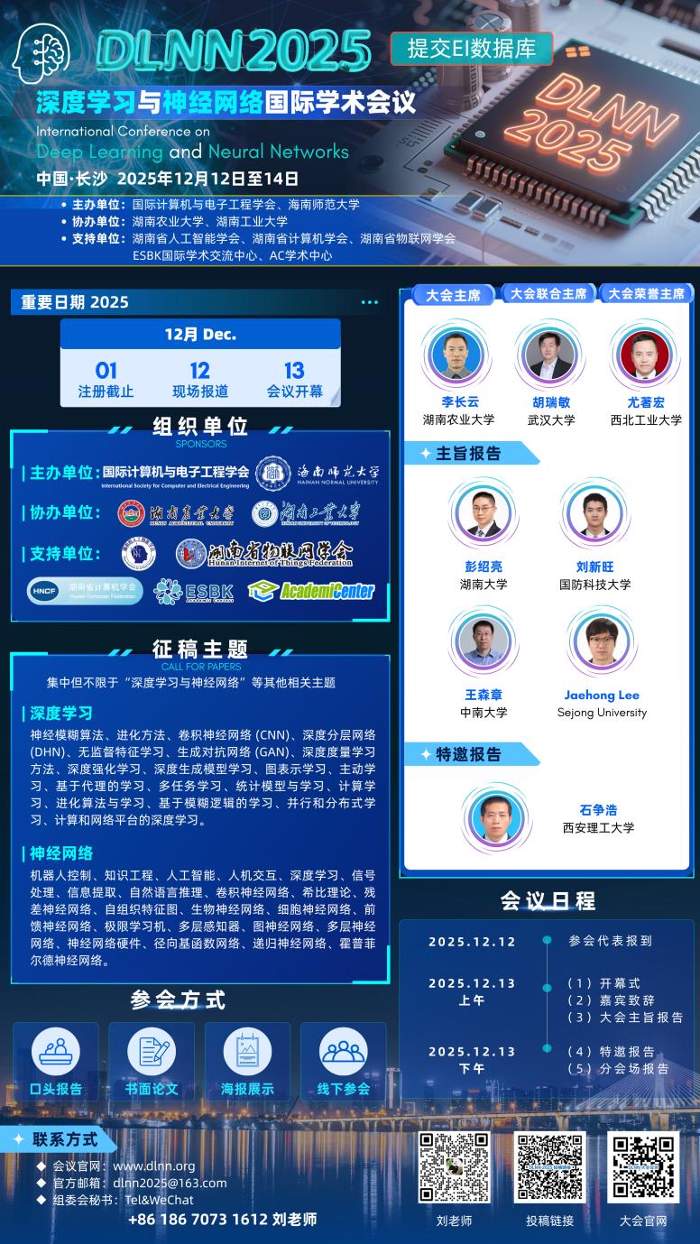 | 2025/12/12-14 | 中國長沙 | 深度學(xué)習(xí)與神經(jīng)網(wǎng)絡(luò)國際學(xué)術(shù)會議 |