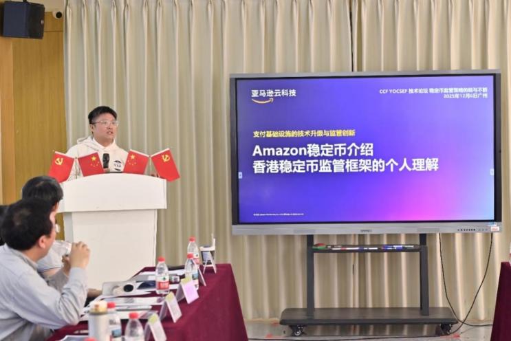 最后,亞馬遜云科技教育行業(yè)總監(jiān)劉東屏以“Amazon穩(wěn)定幣介紹與香港穩(wěn)定幣監(jiān)管框架的個人理解”為題,從跨國科技巨頭的視角出發(fā),深入剖析了亞馬遜將穩(wěn)定幣視為下一代全球金融支付基礎(chǔ)設(shè)施的戰(zhàn)略考量。他指出,對于擁有6380億美元年營收、業(yè)務(wù)遍布全球的亞馬遜而言,穩(wěn)定幣不僅僅是資產(chǎn)數(shù)字化的工具,更是降低跨境結(jié)算成本、規(guī)避匯率風(fēng)險、提升資金流轉(zhuǎn)效率的關(guān)鍵鑰匙。劉東屏詳細(xì)闡述了亞馬遜在B2B結(jié)算與游戲生態(tài)中優(yōu)先試點(diǎn)穩(wěn)定幣的邏輯,并對比了美國、歐洲、新加坡與中國香港在監(jiān)管框架上的異同,高度評價了香港監(jiān)管體系的嚴(yán)謹(jǐn)性與完整性。通過引入AI智能合約監(jiān)控與自動化合規(guī)流程,亞馬遜正致力于構(gòu)建一個“閉環(huán)生態(tài)”,讓穩(wěn)定幣技術(shù)真正賦能實(shí)體經(jīng)濟(jì),在合規(guī)與效率的平衡中尋找數(shù)字金融的新航向。