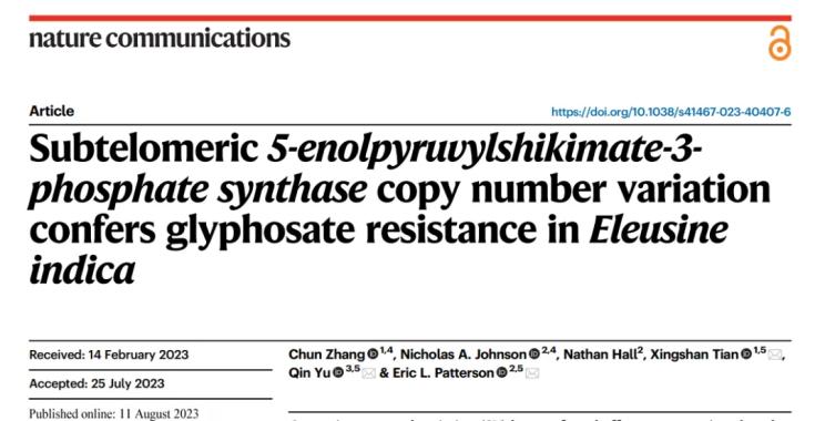 學(xué)術(shù)前沿|廣東省農(nóng)科院田興山研究員團隊解析牛筋草高質(zhì)量基因組:揭示草甘磷靶基因復(fù)增新機制