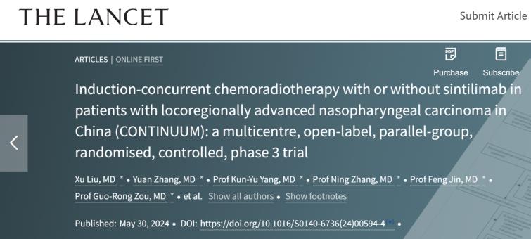柳葉刀發(fā)表!中腫馬駿、孫穎、唐玲瓏團隊開啟鼻咽癌免疫治療新時代