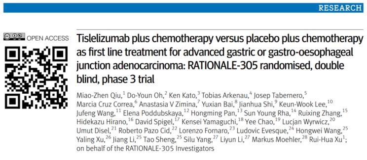 中腫徐瑞華教授團隊為全球晚期胃癌患者提供新的治療方案