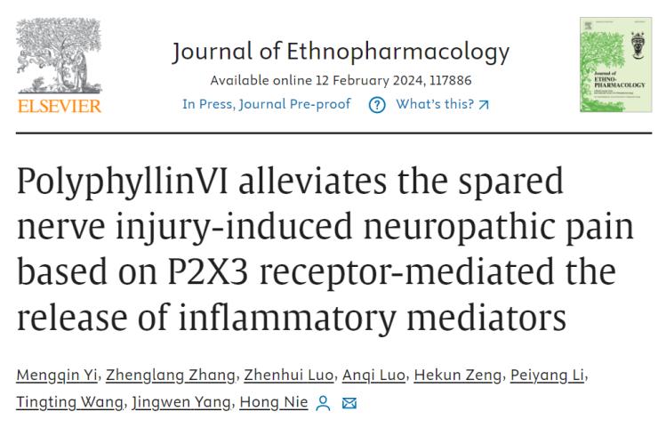 暨南大學(xué)藥學(xué)院聶紅教授團(tuán)隊探索重樓皂苷VI對NPP的鎮(zhèn)痛及作用機(jī)制研究取得進(jìn)展