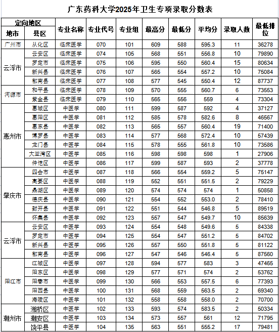 廣東藥科大學(xué)提前批衛(wèi)生專項(xiàng)錄取213人