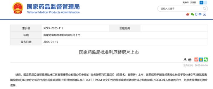 治療非小細(xì)胞癌新藥!奧賽康/信達(dá)第三代 EGFR-TKI 在中國獲批